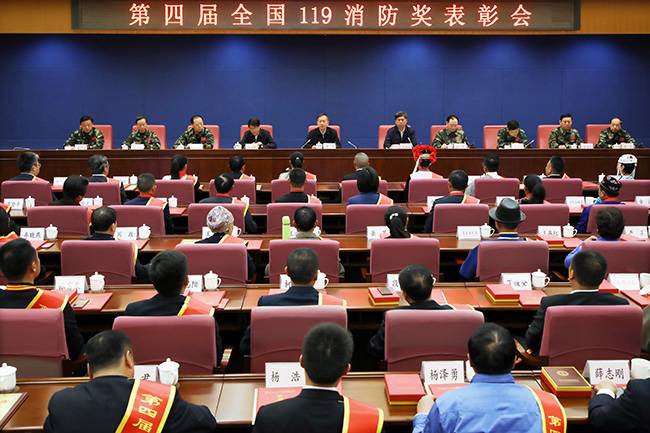 应急管理部党组副书记、副部长付建华主持会议,应急管理部政治部主任许尔锋宣读了《关于表彰第四届全国119消防奖先进集体和先进个人的决定》,内蒙古自治区兴安盟消防“好来宝”义务宣传队队员吴雅华、浙江省舟山市嵊泗县枸杞乡政府专职消防队队长金浩作为获奖代表发言。中央政法委、中宣部、中央文明办、国家林业和草原局、共青团中央、全国妇联、全国总工会等有关部门同志,应急管理部有关司局负责同志,获奖代表及各省、自治区、直辖市消防总队代表参加会议。